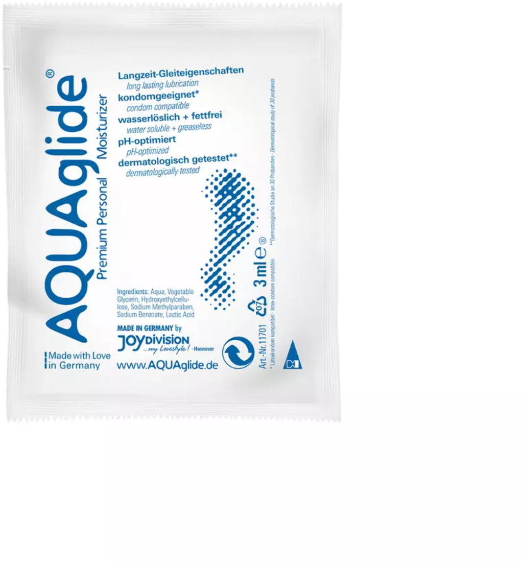 Das neutrale AQUAglide Gleitgel auf Wasserbasis ist wasserlöslich, fettfrei und mit Latexkondomen kompatibel.