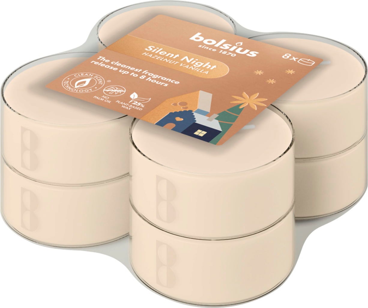 bolsius True Glow Duft-Teelichter Silent Night, Maxilichter 8h / 8er Pack