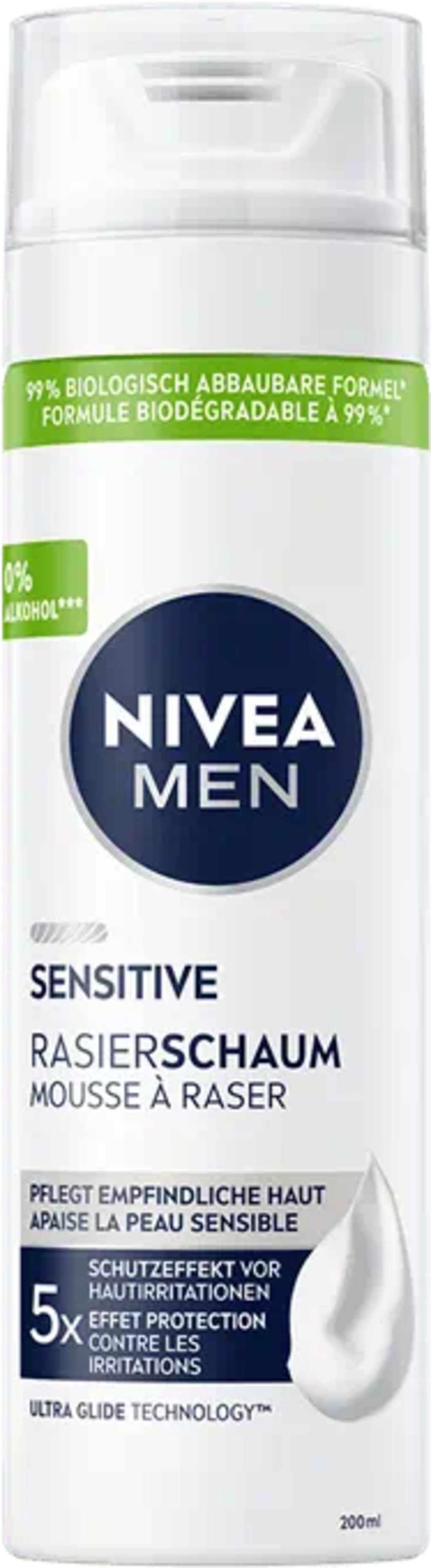 Die milde Formel des NIVEA MEN Sensitive Rasierschaums bereitet die Haut ideal auf die Rasur vor und kann dadurch Anzeichen von Hautirritationen minimieren. Speziell für empfindliche Haut geeignet.