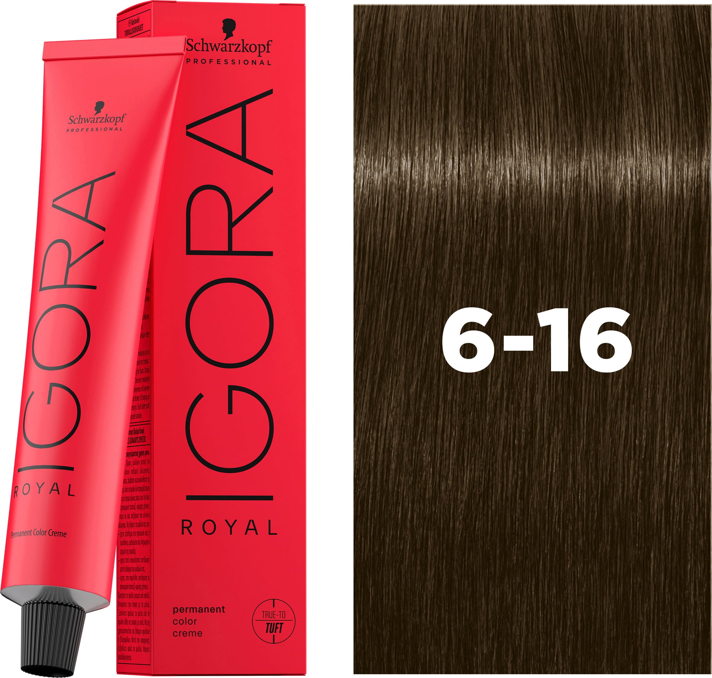 Schwarzkopf Professional IGORA ROYAL Haarfarbe, 6-16 Dunkelblond Cendré Schoko (60 ml)