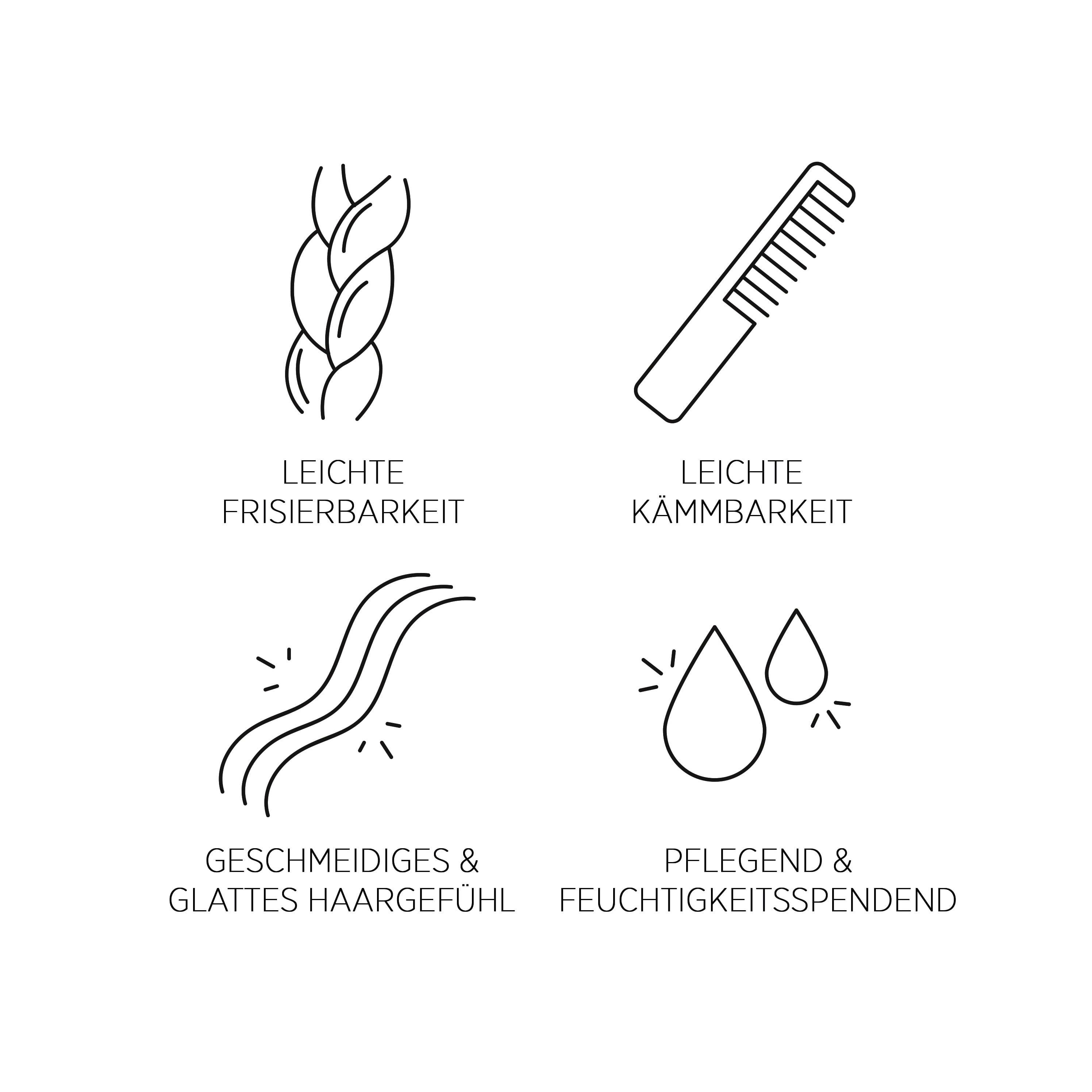 | Anwendung: | Arbeite die Maske sorgfältig ins feuchte Haar ein. Nach einigen Minuten Einwirkzeit kannst du die Maske wieder gründlich auswaschen. |