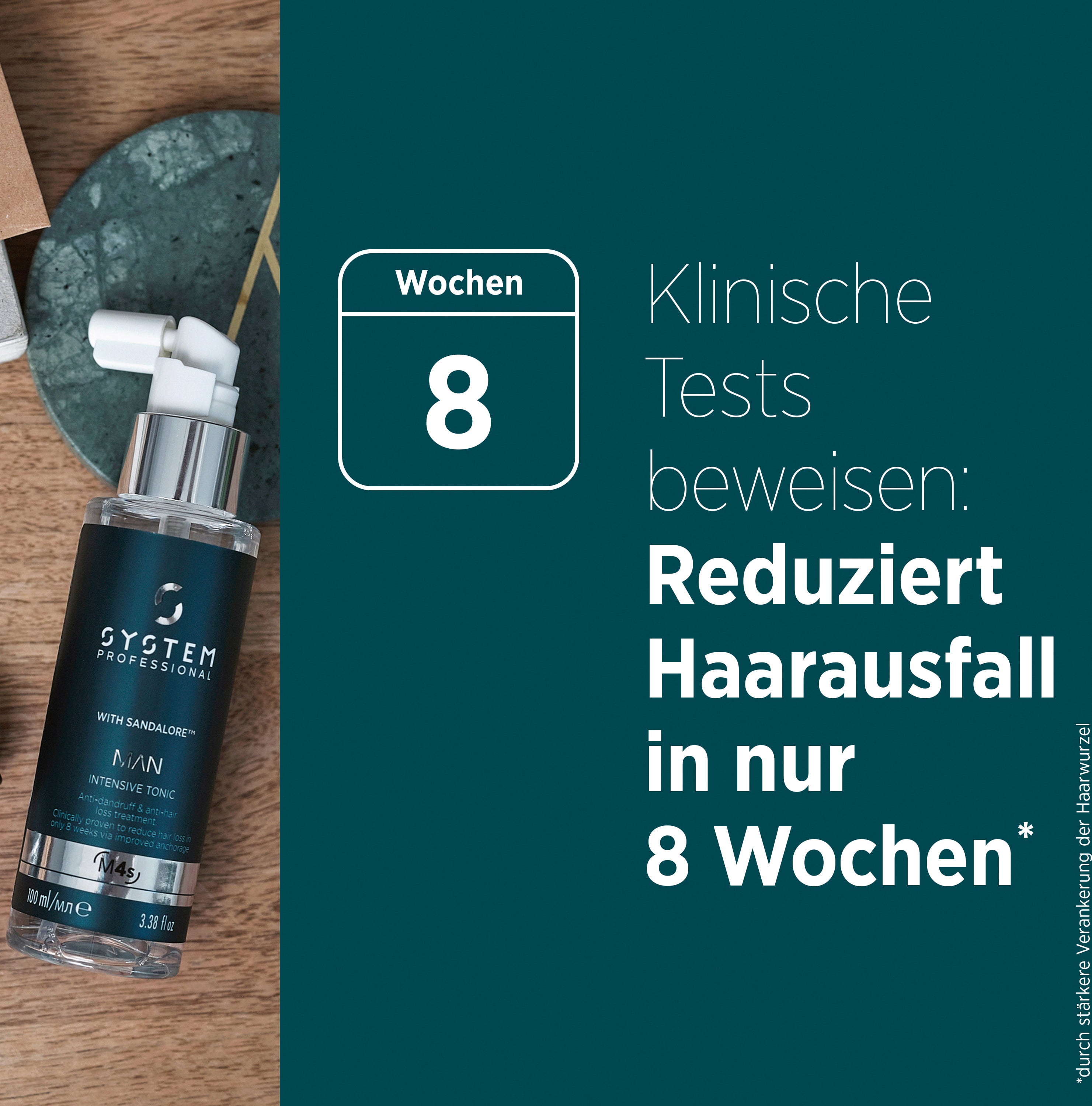Das Man Intensive Tonic von System Professional LipidCode kann dazu beitragen, in nur 8 Wochen für stärker verankerte Haarwurzeln zu sorgen und somit Haarausfall zu vermindern.*