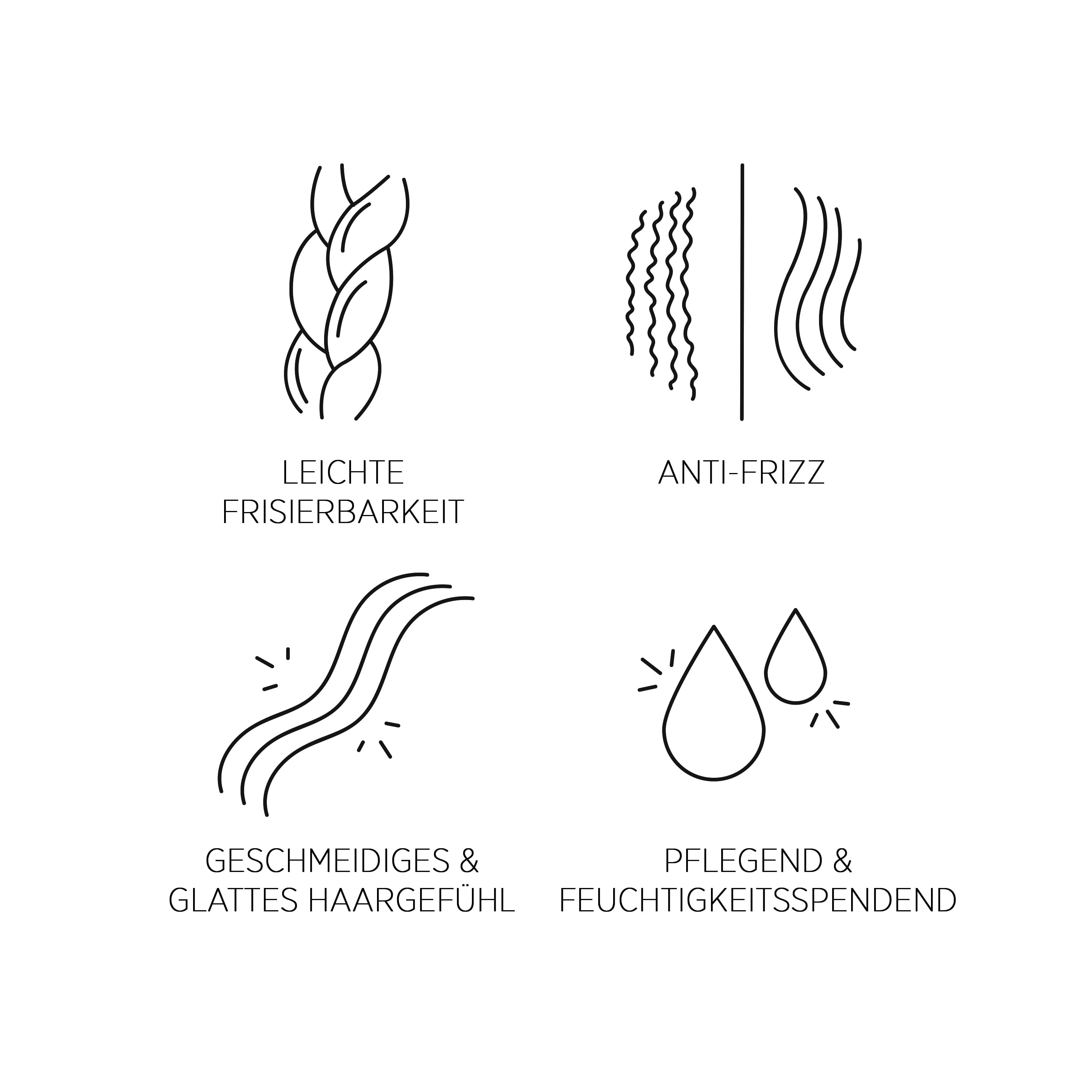 Die entwirrende und tiefenwirksame Pflegespülung bändigt nicht nur Frizz und Luftfeuchtigkeit beeinträchtigtes Haar, sondern sorgt auch für eine beruhigte Oberflächenstruktur und einfache Kämmbarkeit.