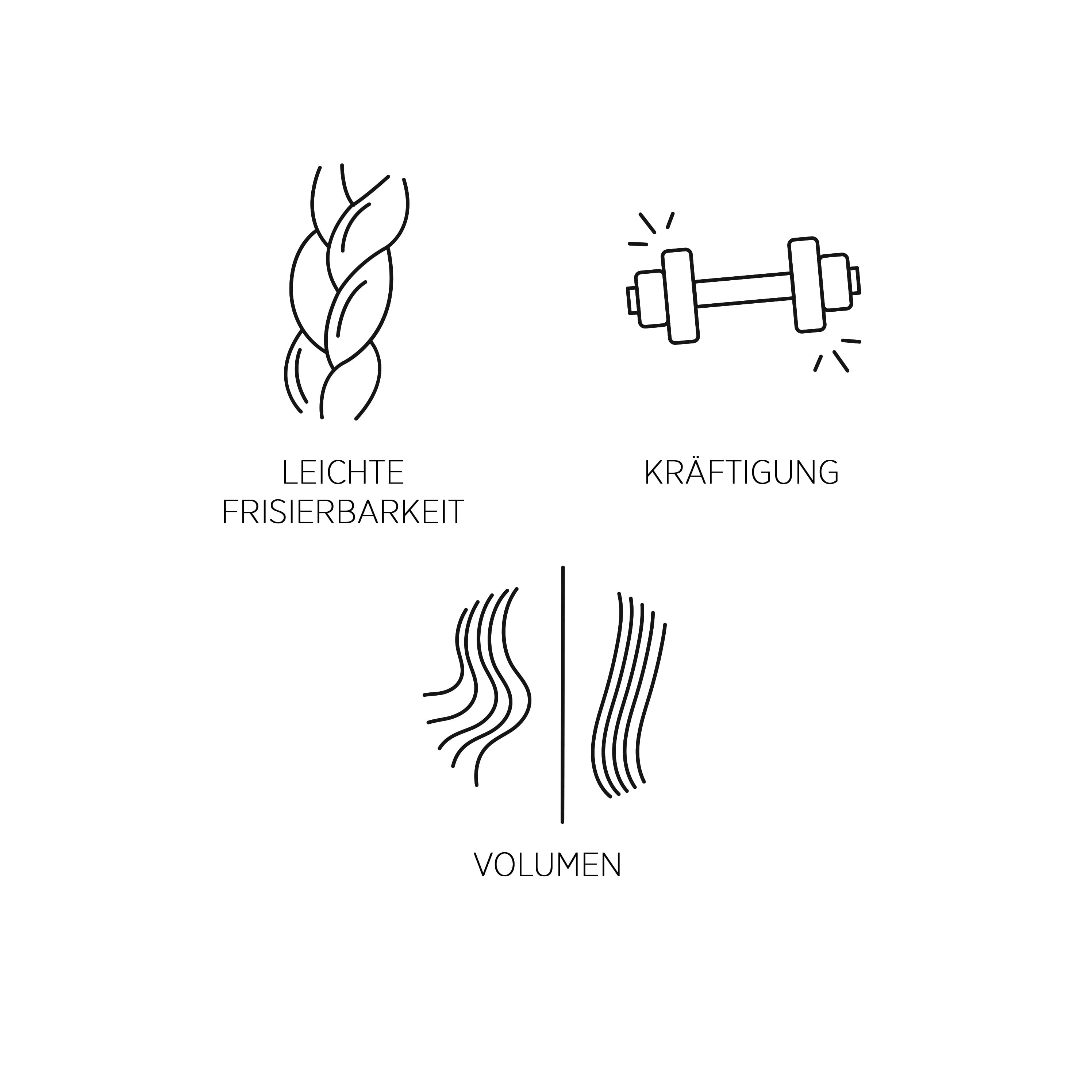 Dank Kreatin, PVP/VA-Polymere und Bambusextrakt erlebst du eine gepflegte Transformation der Haare- für langanhaltende Frisierbarkeit, Kräftigung und Volumen.