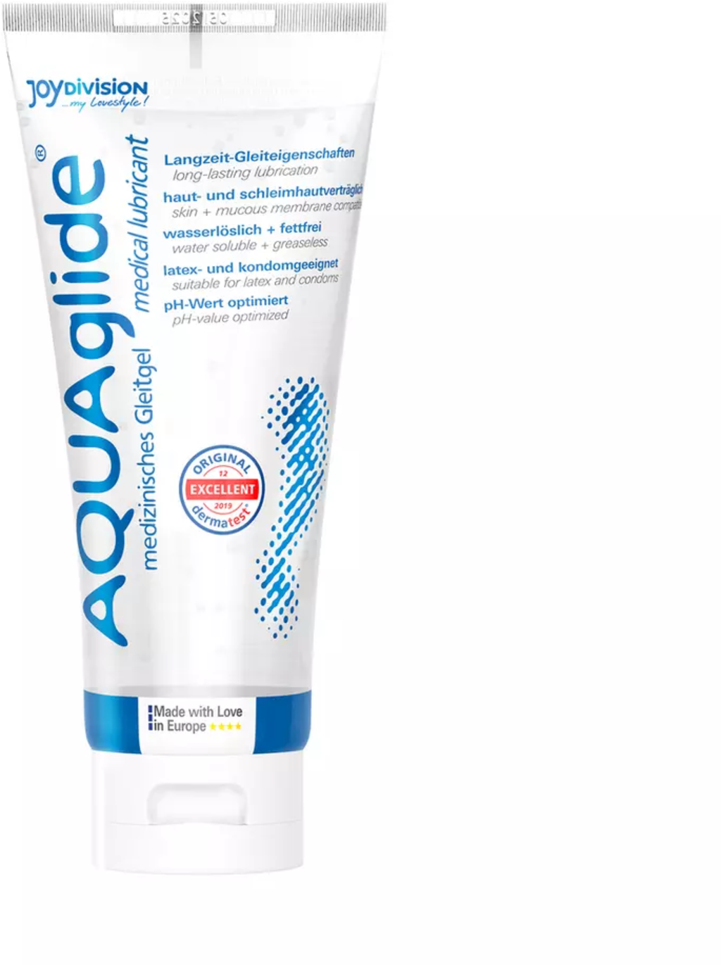 The neutral, water-based AQUAglide lubricant is water-soluble, grease-free and compatible with latex condoms.