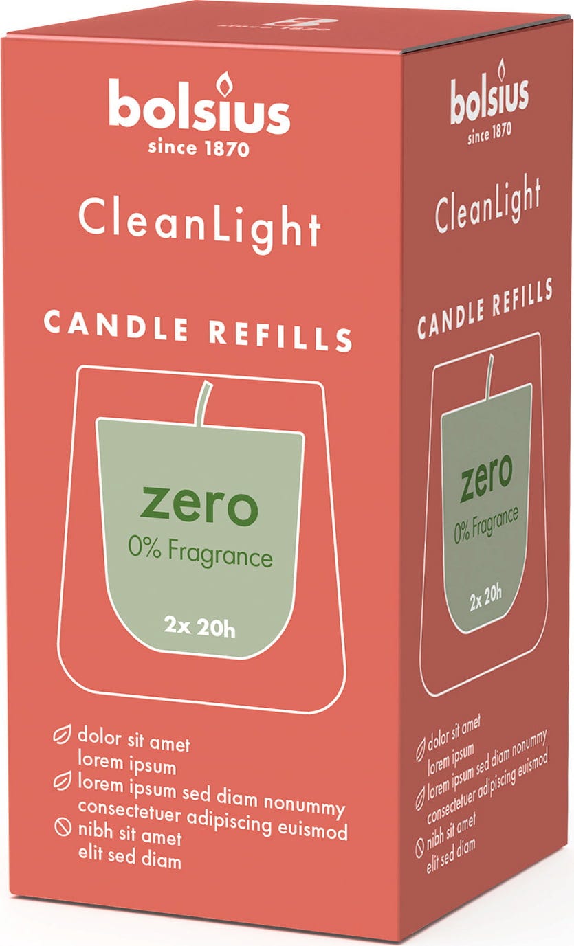 Refill your CleanLight holder by bolsius with a fragrance of your choice. The palm oil-free candle refills are designed to burn out completely without leaving behind a drop of wax in the glass. The candle burns for up to 20 hours and is partly made of vegetable wax.