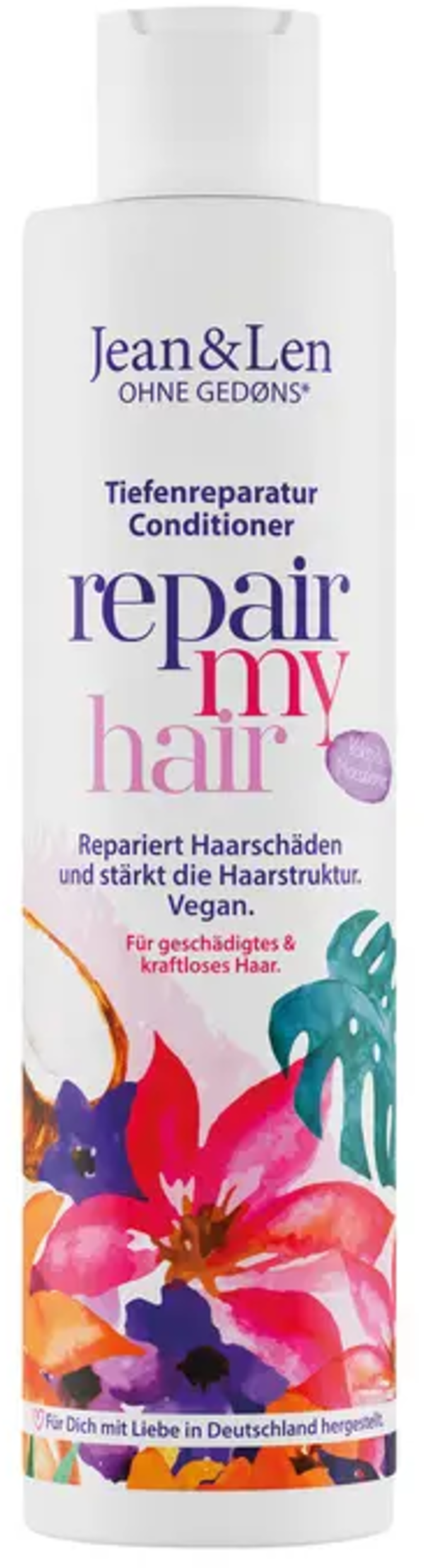 Wonderful care formula for weak, brittle hair - the Coconut Oil/Macadamia Repair Conditioner by Jean&Len restores suppleness and makes the hair easier to comb after each use. The conditioner is vegan and free from parabens, silicones, mineral oils and microplastics.