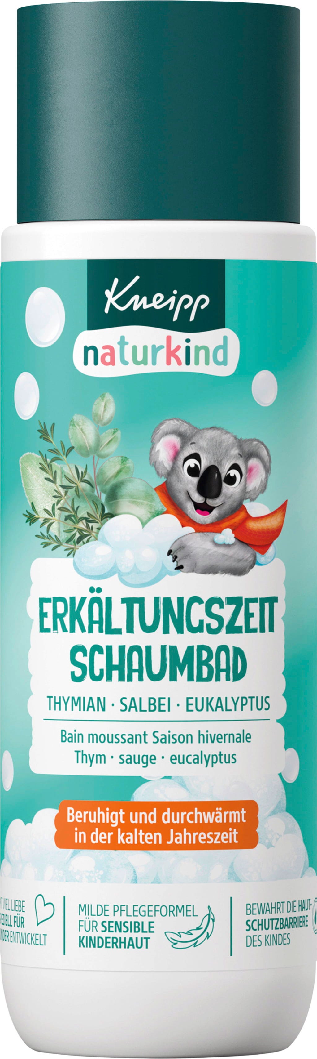The Kneipp naturkind cold time bubble bath gives your child a pleasant foam experience with a fresh fragrance. The formula is specially tailored to the needs of sensitive children's skin and contains natural thyme extract and essential oils of eucalyptus and sage.