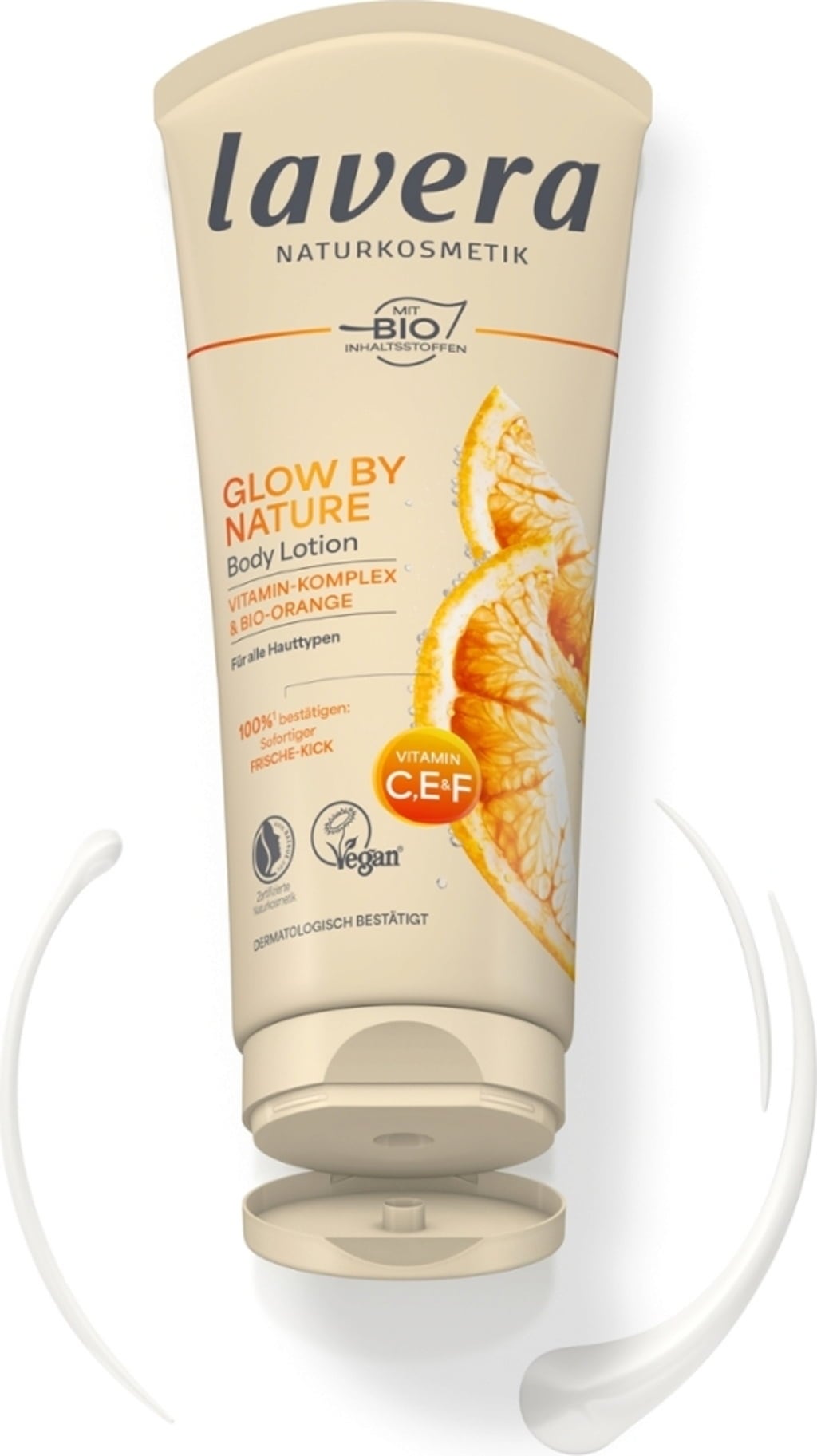 The effective, well-tolerated body lotion formula with vitamins C, E and F gives the skin radiance and a fresh feel. It provides long-lasting moisture, smoothing properties and a fresh, sunny orange fragrance. The pleasant texture is quickly absorbed without being greasy.