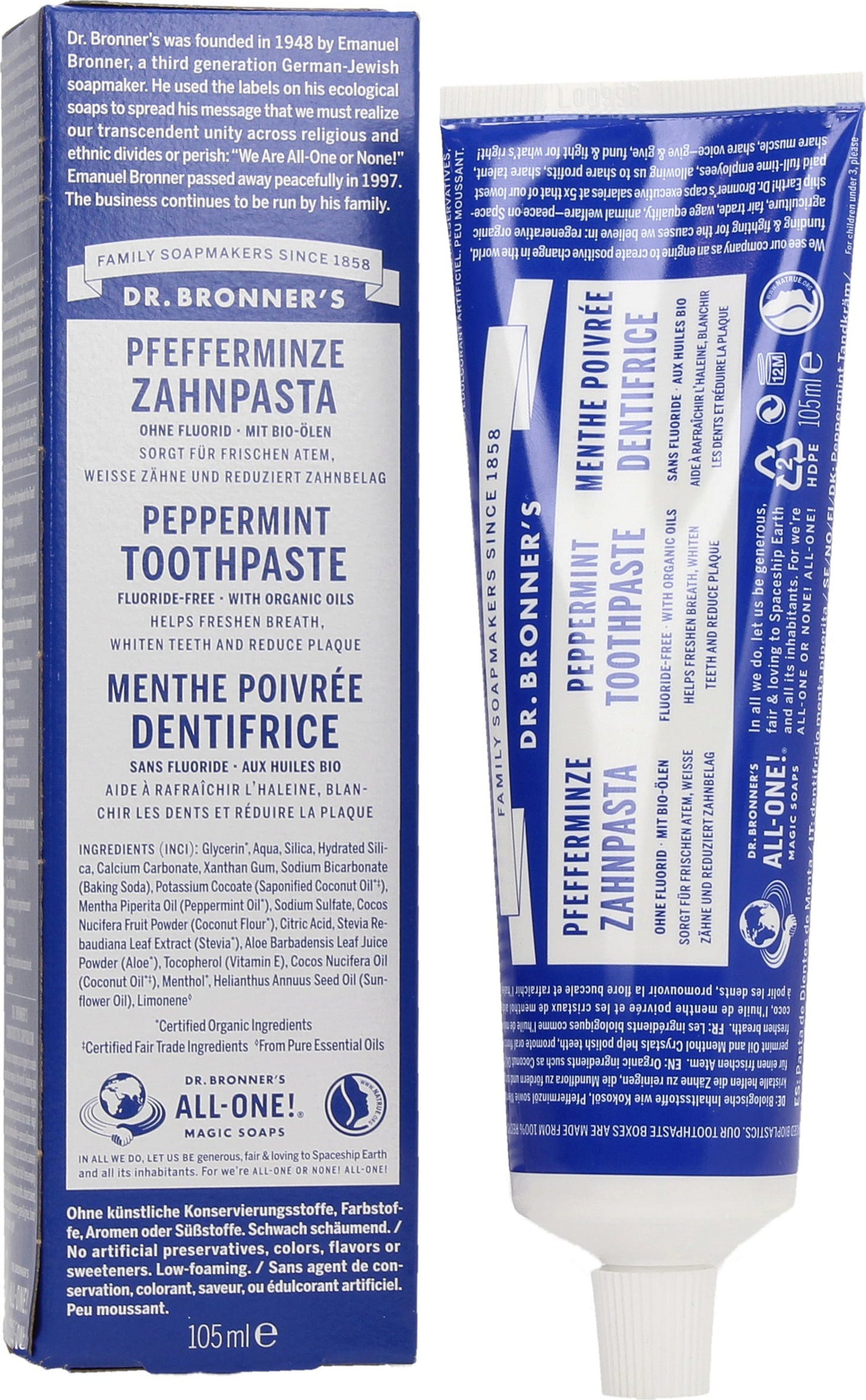 Dr. Bronner's Dentifrice Menthe Poivrée, 105 ml