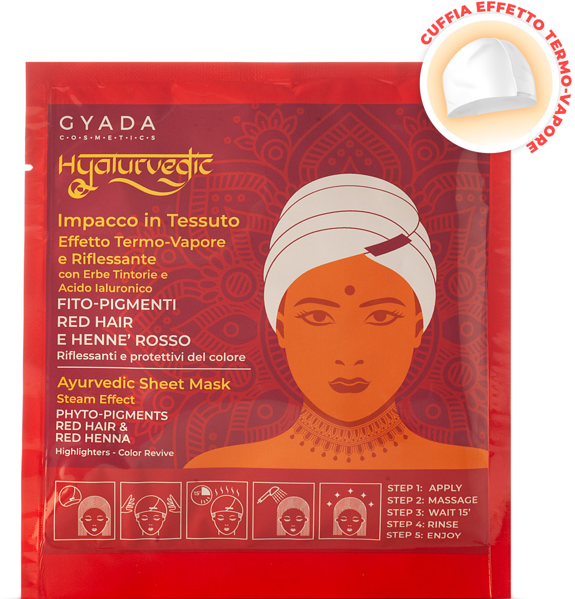 GYADA Cosmetics Masque Capillaire Éclat Couleur en Tissu "Hyalurvedic" - Red Hair, 60 ml