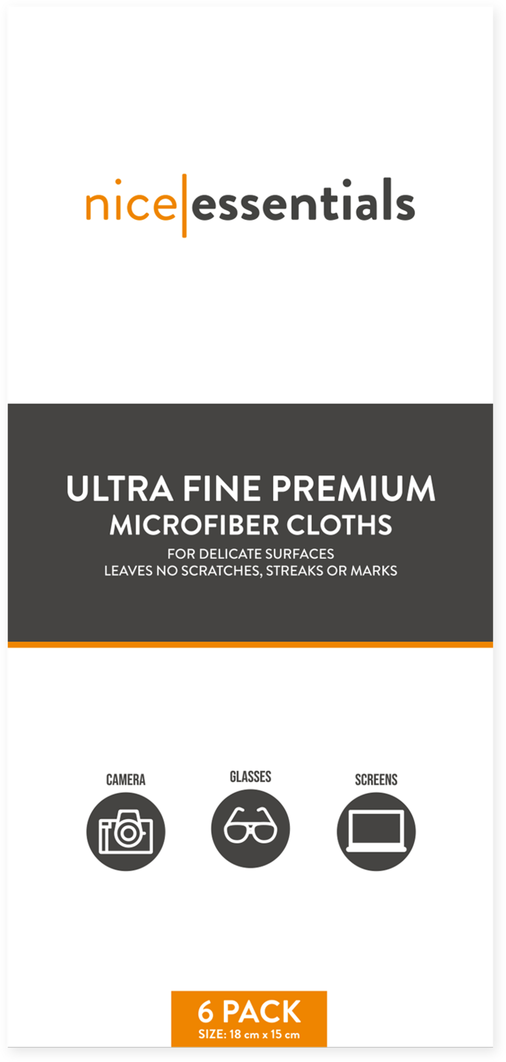 Les chiffons de nettoyage en microfibre ultra fine de nice essentials sont parfaits pour nettoyer en douceur les surfaces sensibles comme les lunettes, écrans ou objectifs d’appareil photo. Leur microfibre hautement tissée attire efficacement la poussière, les impuretés et les traces de gras, sans rayer ni laisser de peluches.