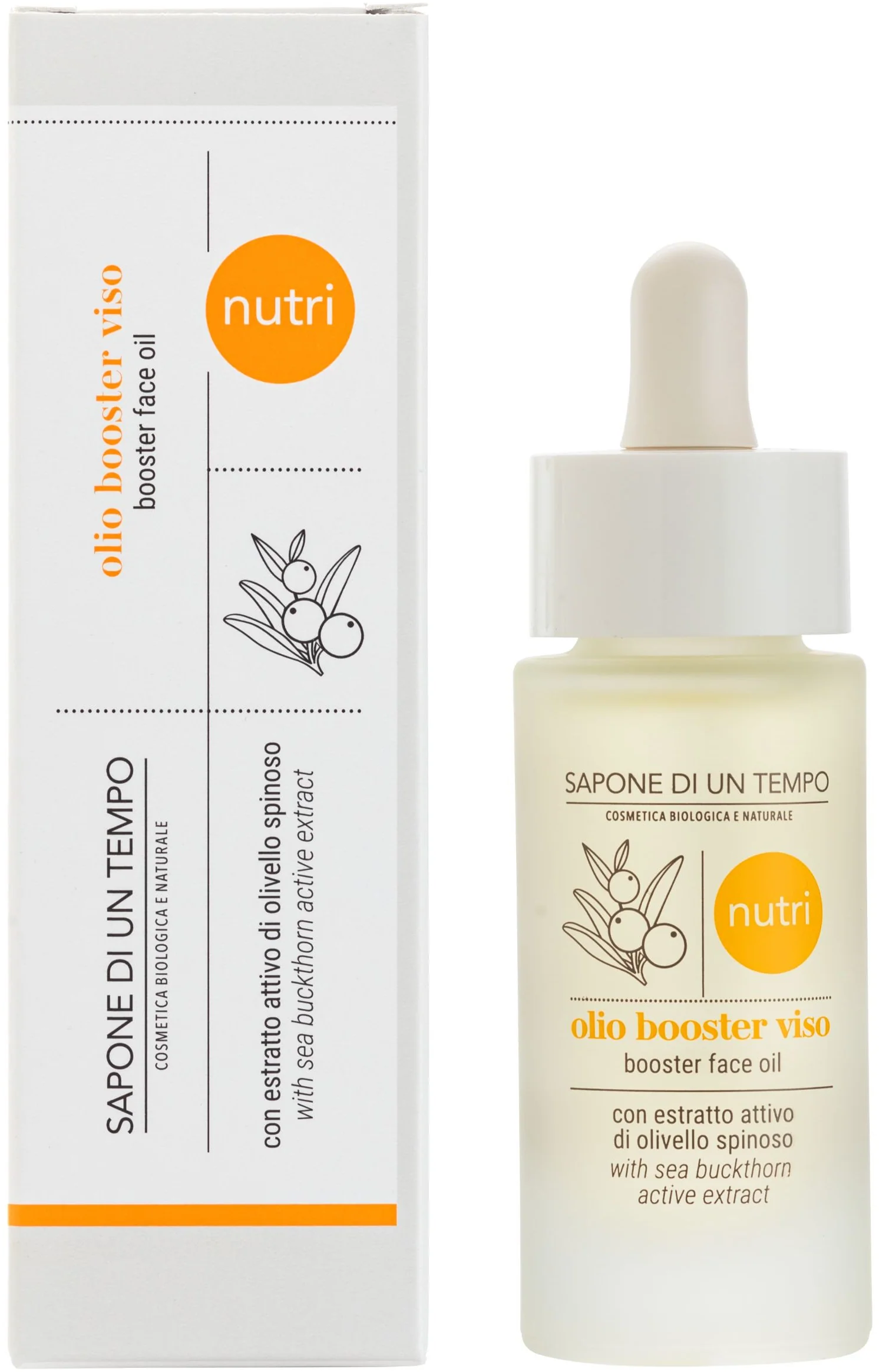 L'huile booster est un soin complémentaire riche qui contient un complexe d'huiles d'olive, d'amande, de lin ainsi que de bourrache activées par des enzymes. De plus, l'extrait d'argousier et l'huile de jojoba apportent un supplément d'hydratation et confèrent, en synergie avec les autres ingrédients, une sensation agréable à la peau, sans film gras.