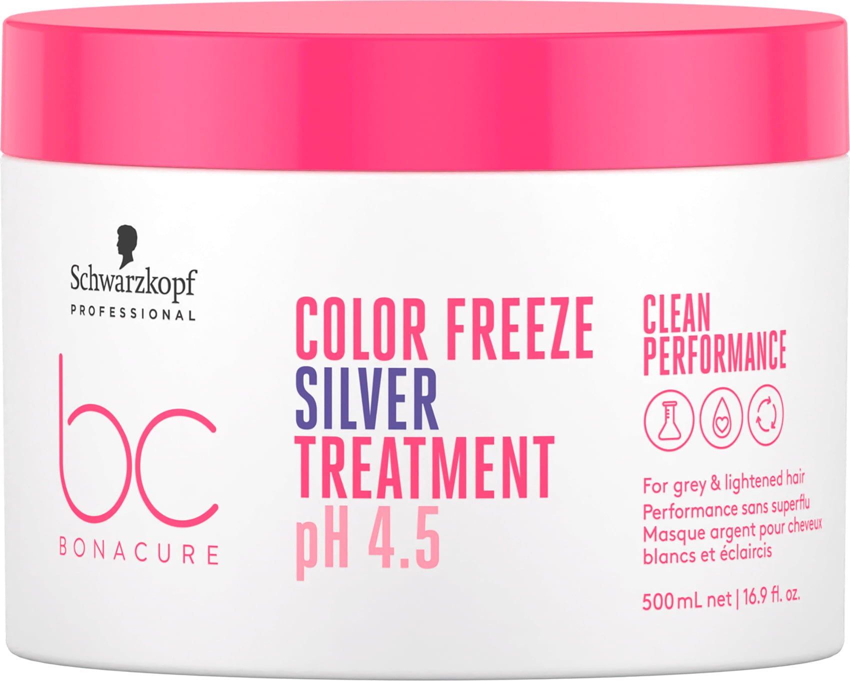 Le Bonacure Color Freeze pH 4.5 Silver Treatment de Schwarzkopf Professional est un soin pigmenté qui agît en profondeur et qui a été spécialement conçu pour les cheveux gris et éclaircis.