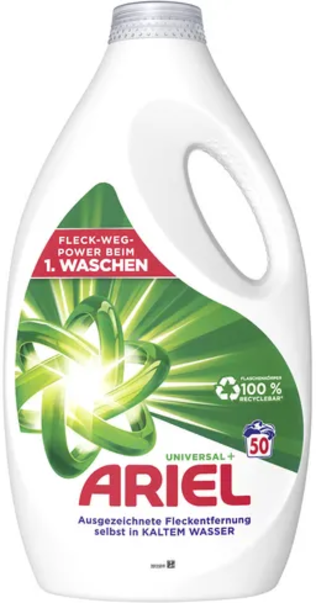 Il detersivo liquido Universal+ di Ariel è adatto per il lavaggio a temperature comprese tra 20 e 95 °C. Rimuove in modo affidabile macchie e sporco dai vestiti e può essere utilizzato anche per il lavaggio a mano.