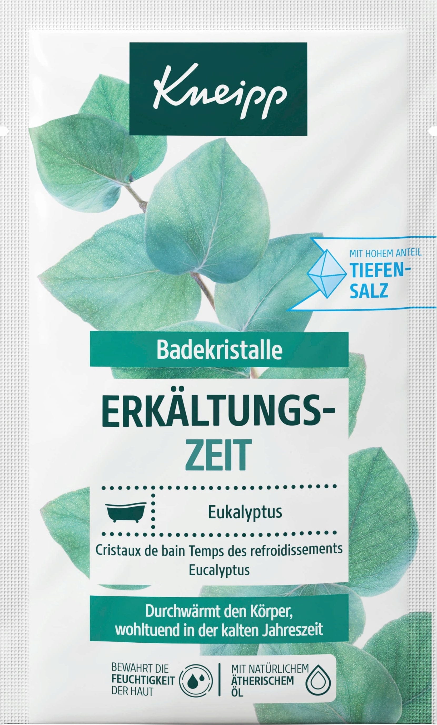I cristalli da bagno Kneipp per la stagione fredda contengono prezioso olio essenziale di eucalipto, che sprigiona una fragranza fresca e limpida una volta sciolti in acqua. L'elevata percentuale di sale marino puro e naturale, estratto dalla salamoia di un mare primordiale risalente a 250 milioni di anni fa, a una profondità di 460 metri, garantisce un'esperienza di bagno speciale nel comfort di casa propria. La formula delicata aiuta inoltre la pelle a trattenere l'idratazione, ideale per chi desidera un bagno ricco di freschezza naturale.