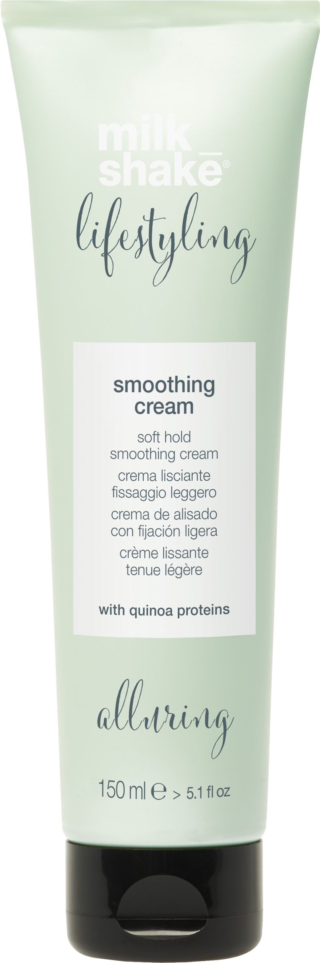 La crema lisciante Lifestyle Smoothing Cream di milk_shake è una crema lisciante leggera per capelli morbidi e gestibili, con tenuta naturale. È studiata per lisciare delicatamente durante l'asciugatura, ridurre l'effetto crespo e contrastare i danni causati dal calore dello styling. Allo stesso tempo, districa i capelli, lasciandoli morbidi e facili da pettinare. Il risultato è una lucentezza setosa e una finitura levigata, senza appesantire.