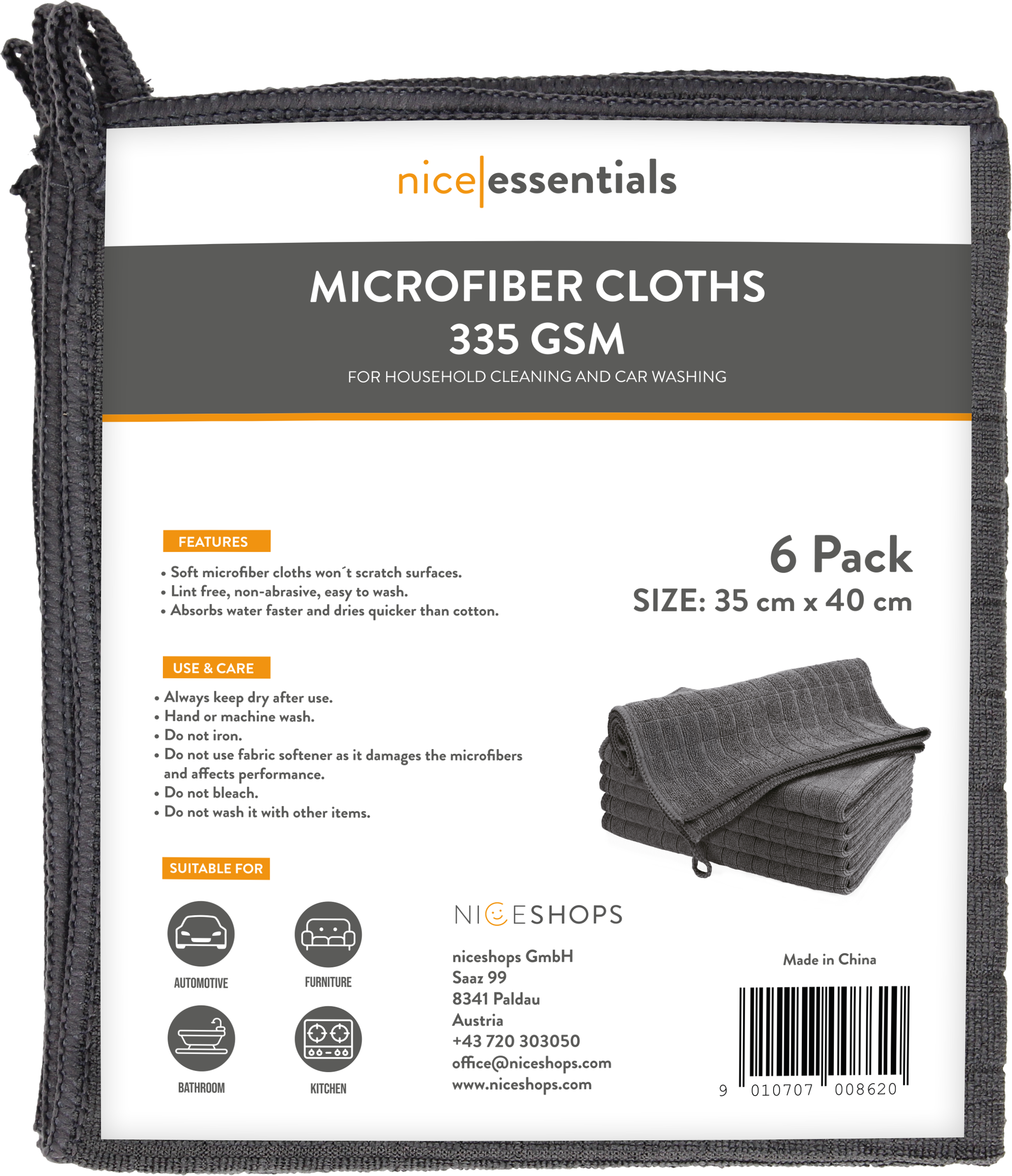 nice essentials Set di Panni in Microfibra - 35 x 40 cm, 6 pz.