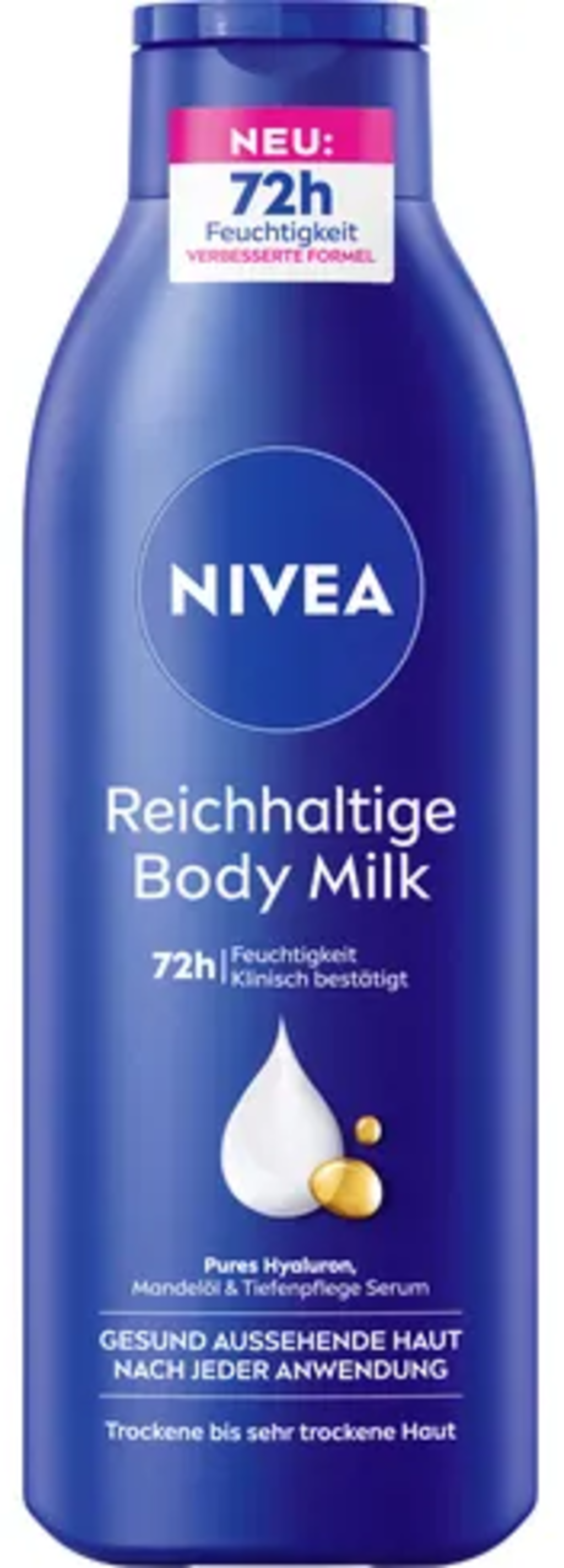 Il Latte Corpo Nutriente di Nivea è una lozione per il corpo che nutre la pelle e le dona una piacevole idratazione. La formula migliorata con acido ialuronico puro, delicato olio di mandorle e siero nutriente si assorbita rapidamente senza lasciare residui grassi. Per una sensazione di pelle morbida e nutrita dopo ogni utilizzo.