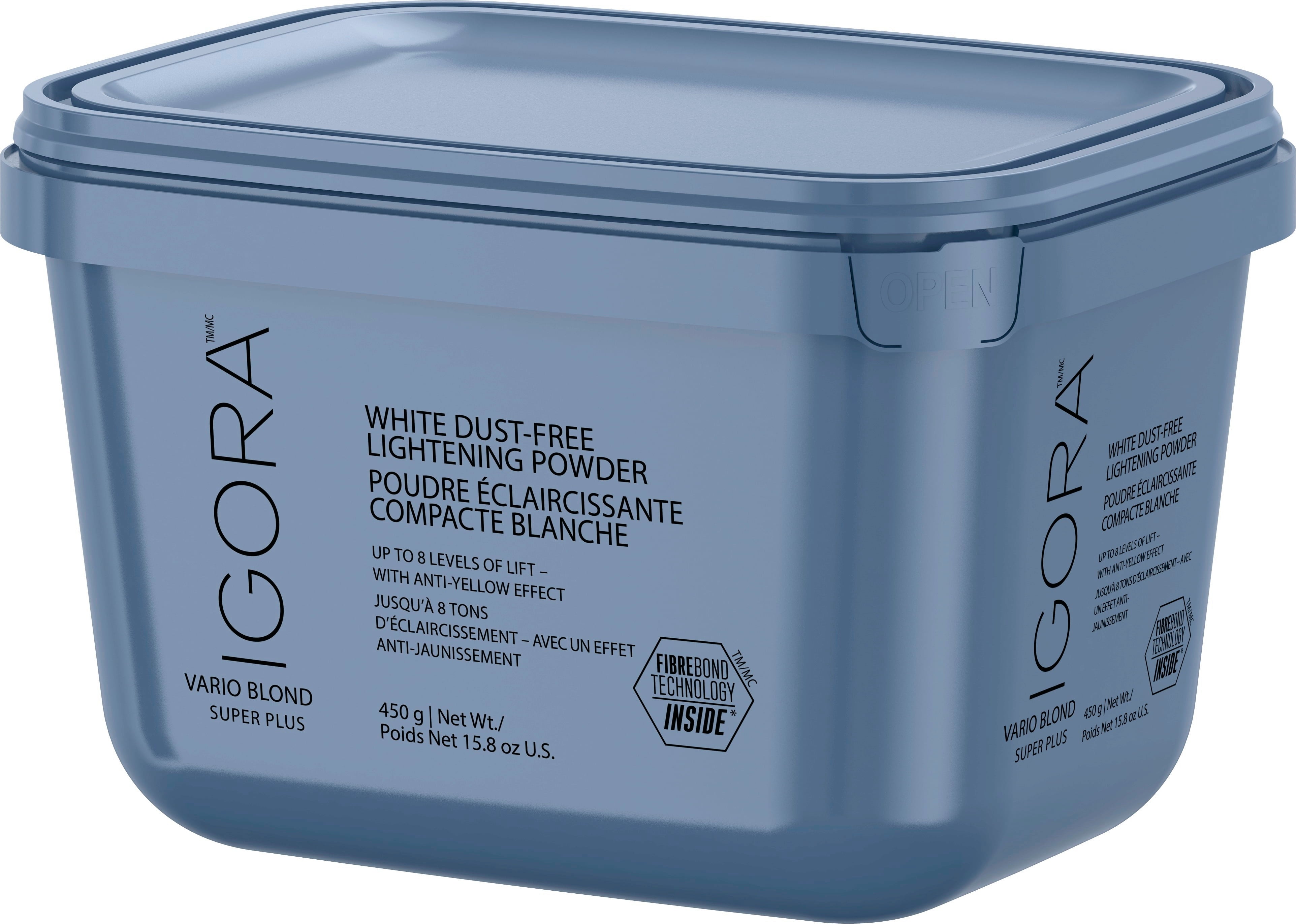 Igora - Vario Blond, Super Plus Powder Lightener di Schwarzkopf Professional è una polvere decolorante estrema, che schiarisce i capelli fino a 8 livelli. La Fibre Bond Technology assicura una decolorazione delicata, in grado di rinforzare anche le fibre capillari e di ridurre i capelli spezzati.