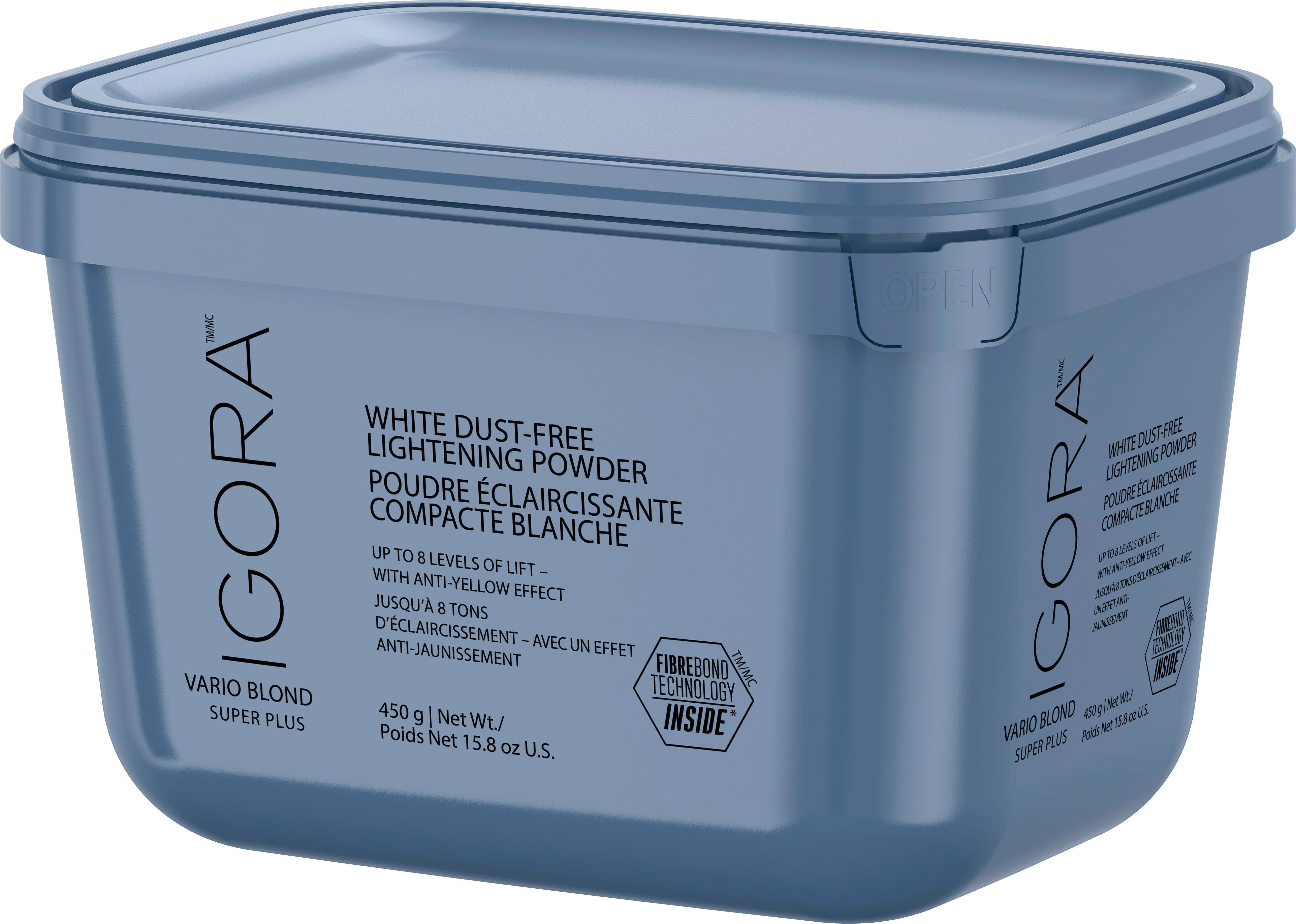 Con la polvere decolorante IGORA VARIO BLOND SUPER PLUS - Powder Lightener ottieni risultati intensi (fino a 8 livelli di schiaritura) per un biondo chiaro e luminoso. La sua formula innovativa neutralizza efficacemente i sottotoni caldi, riducendo i riflessi gialli indesiderati. Grazie alla tecnologia FibreBond integrata, le fibre capillari sono protette durante il processo di decolorazione e la struttura del capello rimane forte ed elastica. La consistenza cremosa e priva di polvere è facile da applicare e garantisce risultati uniformi.