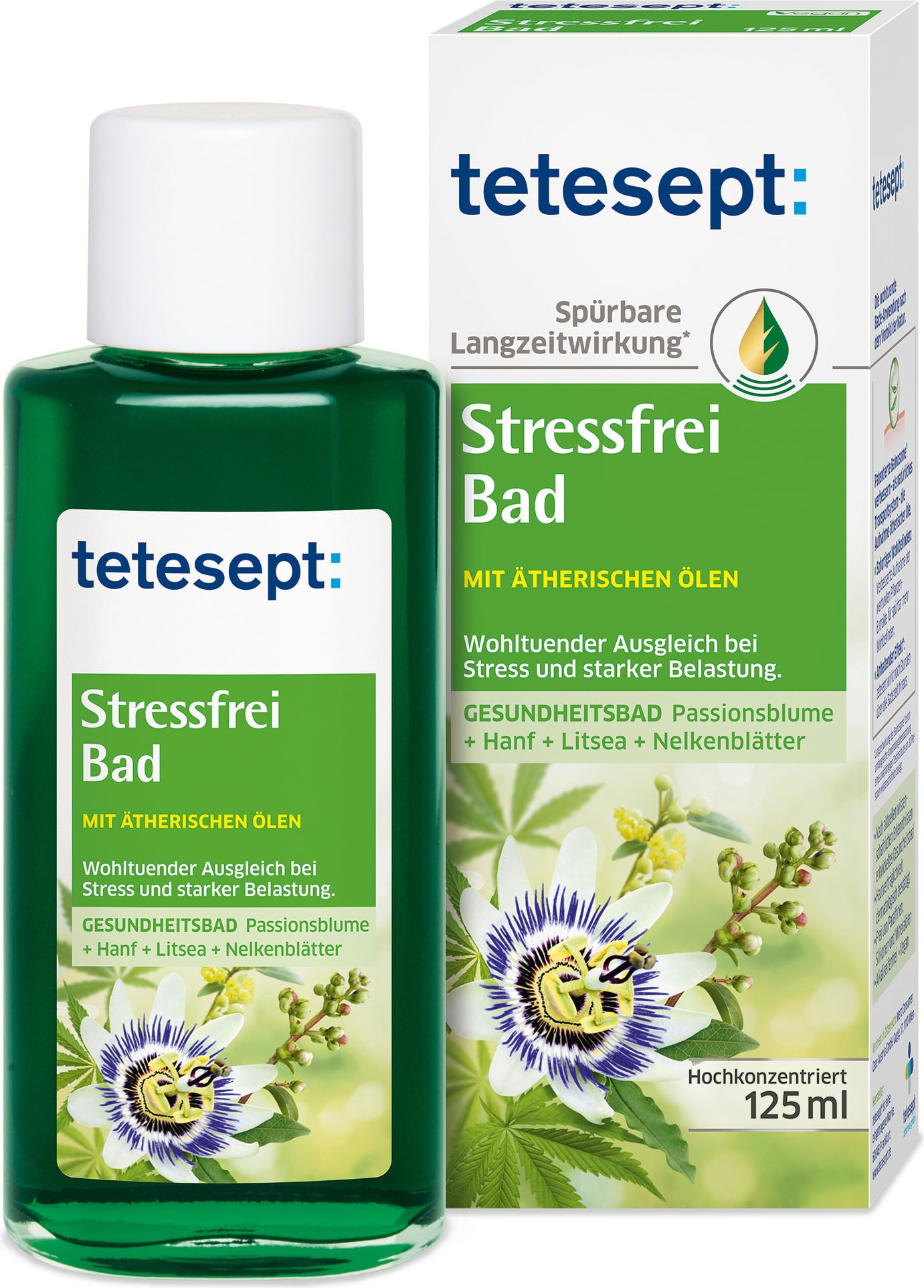 Soprattutto quando la vita quotidiana diventa troppo impegnativa e un impegno segue l'altro, un bagno caldo è proprio quello che ci vuole! Il Bagno Concentrato - Stress Free di tetesept contiene oli essenziali naturali di litsea, foglie di chiodi di garofano, eucalipto, arancia, lavanda ed estratto di passiflora. Questi estratti vegetali creano una fragranza aromatica che aiuta a dimenticare lo stress.