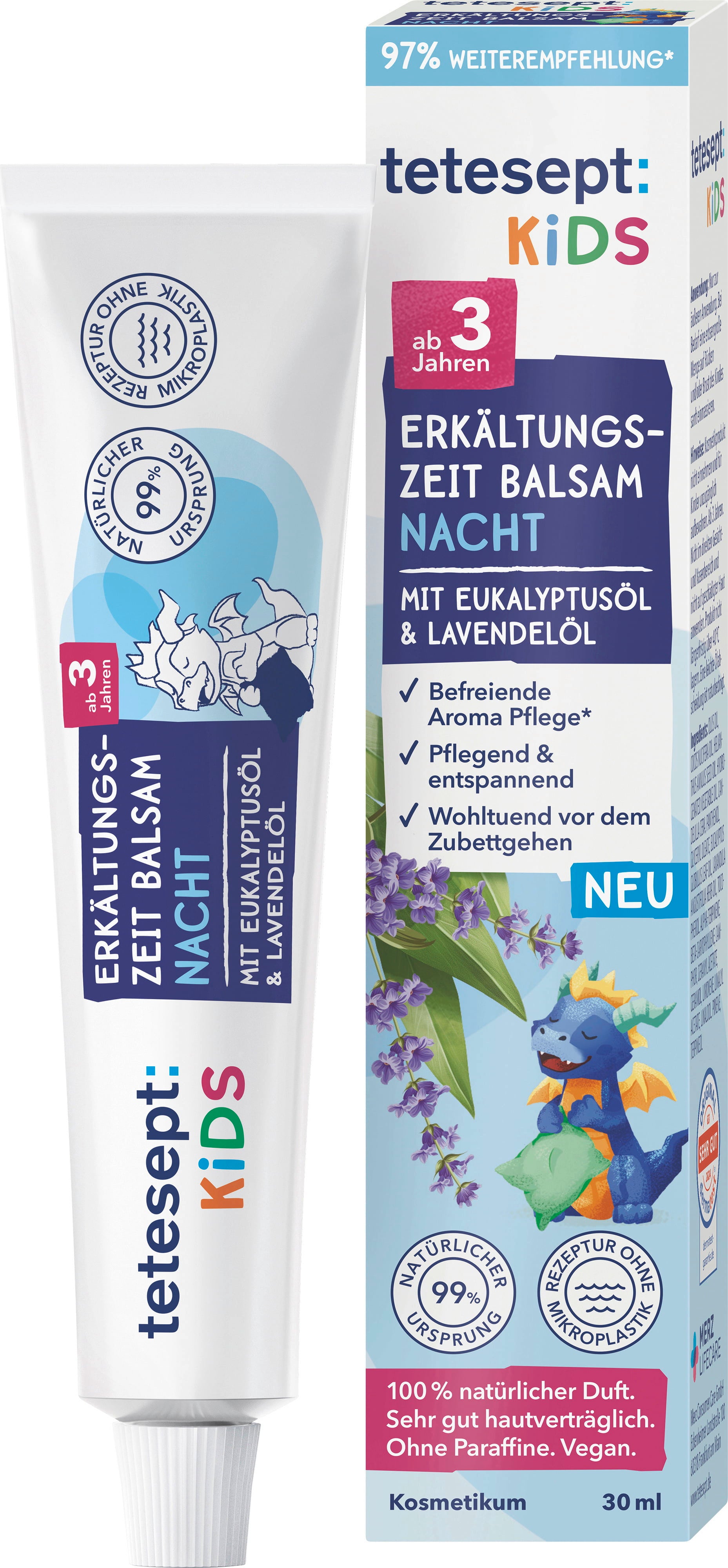 Questo balsamo di tetesept è ideale da applicare su petto e schiena prima di coricarsi. La sua formula delicata coccola la pelle con il profumo naturale di olio di eucalipto e lavanda. È vegan, senza paraffine e senza microplastiche, adatto ai bambini dai 3 anni in su.