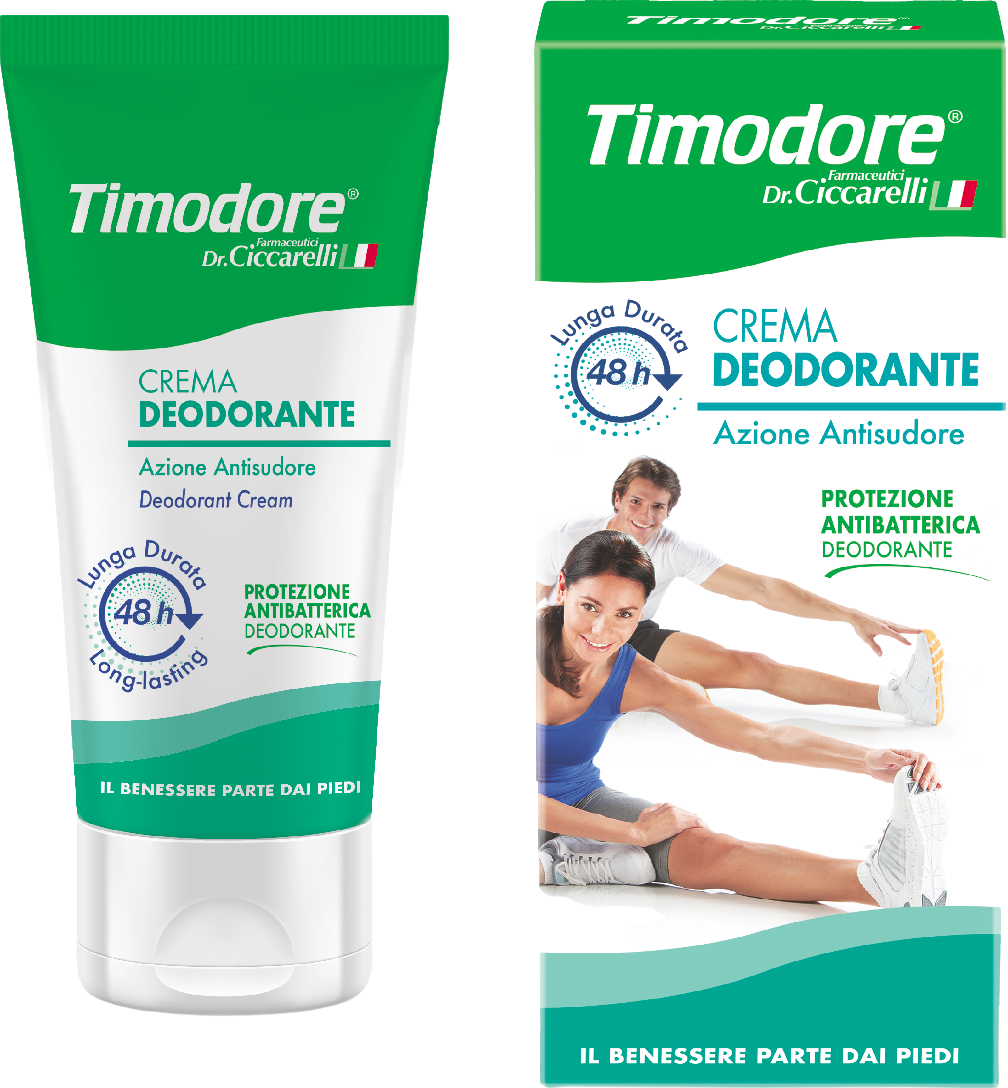 Timodore Crema Deodorante 48h per Piedi, 50 ml