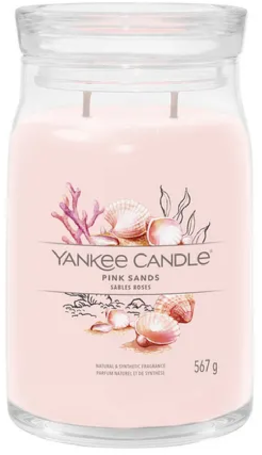 La candela profumata Signature Jar di Yankee Candle® non solo ha un design elegante, ma colpisce anche per la sua lunga durata di combustione e il suo profumo meraviglioso! La varietà "Pink Sands" ti porta su un'isola esotica con note di agrumi e fiori.